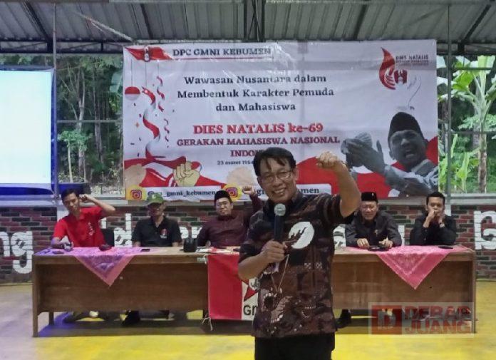 Kabupaten Kebumen – Anggota Fraksi PDI Perjuangan DPRD Jawa Tengah, Saiful Hadi mengajak mahasiswa di Kebumen untuk meresapi nilai luhur ajaran Bung Karno. Hal ini disampaikan saat Dies Natalis Gerakan Mahasiswa Nasional Indonesia (GMNI) ke 69, di Ndalem Rawa Gowok, Pejagoan, Selasa (29/3/2023).