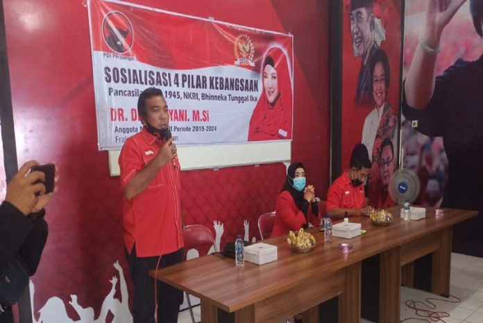 Kota Tegal – Anggota Fraksi PDI Perjuangan DPR RI, Dewi Aryani menyerahkan sekitar 25 ribu paket bantuan pangan dan kesehatan kepada Struktural Partai, serta masyarakat yang berada di Kota Tegal dan Kab. Tegal. Hal tersebut merupakan rangkaian kegiatan sosialisasi 4 pilar kebangsaan. Kegiatan tersebut dilaksanakan di 2 lokasi, yaitu di Kantor DPC PDI Perjuangan Kota Tegal, serta Kantor DPC PDI Perjuangan Kab. Tegal.