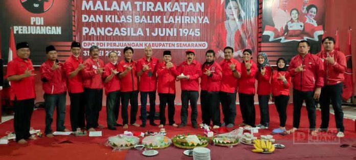 Kabupaten Semarang – Ketua DPC PDI Perjuangan Kab. Semarang, Ngesti Nugraha, S.H., M.H., menyambut Bulan Bung Karno dengan menyelenggarakan malam tirakatan Peringatan Hari Lahir Pancasila. Kegiatan yang dilaksanakan di Kantor DPC PDI Perjuangan Kab. Semarang, dihadiri oleh Ketua DPRD Kab. Semarang, Bondan Marutohening, Anggota Fraksi PDI Perjuangan DPRD Kab. Semarang, KomandanTe, serta Ketua, Sekretaris, Bendahara Badan dan Sayap Partai, , Senin (31/5/2021).