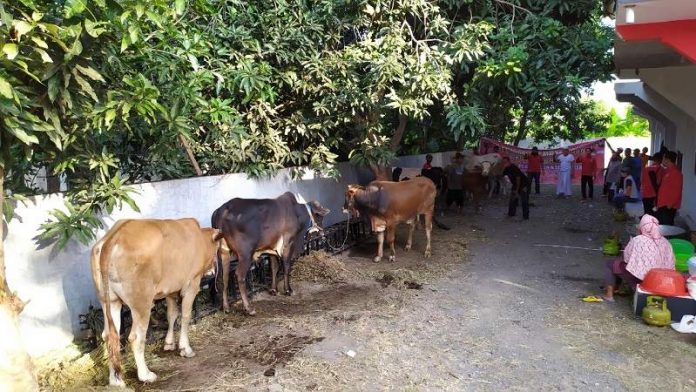 Kabupaten Demak – Sambut semarak Idul Adha tahun ini, kader Banteng Kota Wali lakukan giat penyembelihan hewan kurban sejumlah 6 sapi dan 4 kambing yang dihasilkan melalui dana gotong-royong kader, Sabtu (1/8/2020).