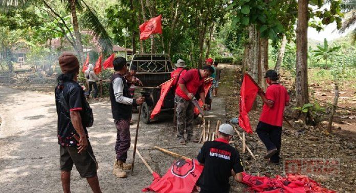 Sepanjang 7 KM di beberapa titik dilakukan pemasangan bendera, banner, spanduk, dan umbul-umbul dari Desa Johunut hingga lokasi, yakni Desa Gendayakan. Hal tersebut dilakukan oleh seluruh anggota struktural PAC PDI Perjuangan Kecamatan Paranggupito, Minggu (24/4/2022).