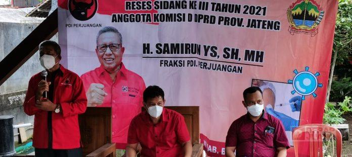 Kabupaten Cilacap – Anggota Fraksi PDI Perjuangan DPRD Provinsi Jawa Tengah H. Samirun YS, S.H., M.H., menggelar Reses di Desa Jeruklegi Wetan, Kecamatan Jeruklegi. Kegiatan ini dilaksanakan dengan tetap menerapkan protokol kesehatan, dengan dihadiri oleh Ketua PAC PDI Perjuangan Kecamatan Jeruklegi, Andry Leonard Rotty beserta jajarannya, Ketua, Sekretaris, dan Bendahara Ranting PDI Perjuangan se-Kecamatan Jeruklegi, serta beberapa tokoh masyarakat, Sabtu (21/8/2021).