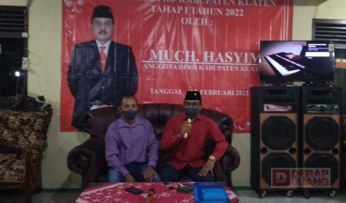 Kabupaten Klaten – Anggota Fraksi PDI Perjuangan DPRD Kabupaten Klaten, Muh Hasyim menggelar Reses I Tahun 2022 bertempat di Dukuh Jurang Porong, Desa Bandungan, Kecamatan Jatinom, Sabtu (12/2/2022).