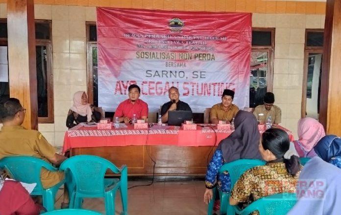 Kabupaten Boyolali – Anggota Fraksi PDI Perjuangan DPRD Jawa Tengah, Sarno, S.E hadir di tengah masyarakat Kecamatan Klego untuk melaksanakan Sosialisasi Non Perda dengan tema ‘Ayo Cegah Stunting’.
