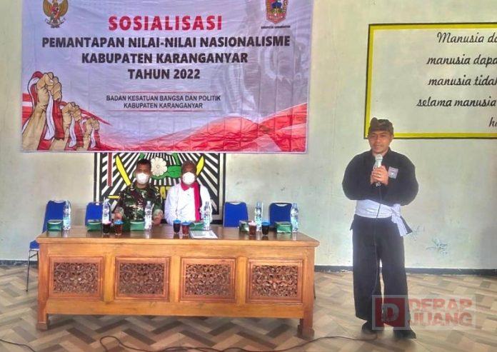 Acara sosialisasi ini memiliki tajuk Pementapan Nilai-Nilai Pancasila yang diinisiasi Sartono bersama Bakesbangpol Karangnyar di Beruk, Jatiyoso serta dihadiri sejumlah 45 peserta, Sabtu (4/6/2022).