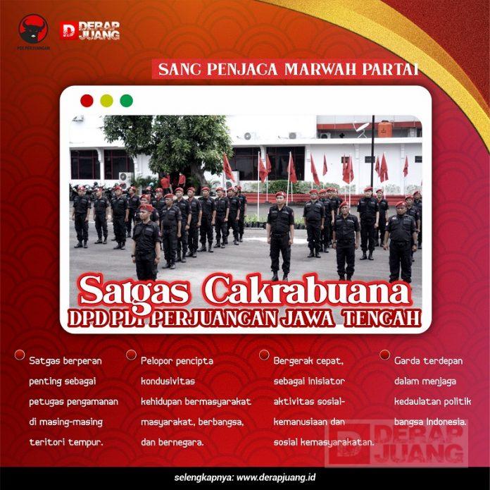 Eksistensi Satgas Cakrabuana DPD PDI Perjuangan Jawa Tengah pada dasarnya merefleksikan terhadap tugas pengamanan di teritori tempur. Mereka nantinya akan menjadi garda terdepan dalam menciptakan keamanan dan ketertiban sehingga Partai bisa menjalankan pengabdian secara optimal. Di sisi lain, mereka juga akan membangun sinergitas dengan masing-masing KomandanTe sehingga fungsi elektoral untuk mendulang simpati masyarakat dapat terbantu melalui kehadirannya.
