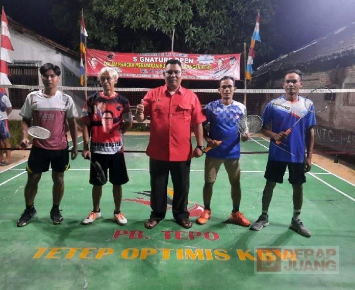 Kabupaten Brebes – Dalam rangka menyemarakan Hari Ulang Tahun (HUT) PDI Perjuangan ke-49, Pimpinan Anak Cabang (PAC) PDI Perjuangan Kecamatan Ketanggungan mengadakan Kejuaran Bulu Tangkis SIGNATURE OPEN (SIng pentinG NyATa dadi sedulURE) yang dilaksanakan di Lapangan Badminton Desa Kubangwungu Kecamatan, Selasa (18/01/2022).
