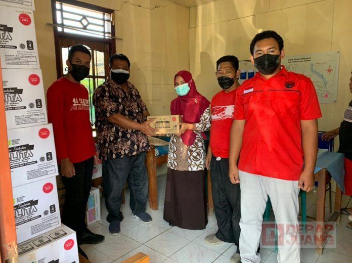 Kabupaten Kendal – Ketua DPC PDI Perjuangan Kab. Kendal, Akhmat Suyuti menyerahkan bantuan makanan tambahan untuk ibu hamil dan balita di Desa Triharjo, Selasa (03/08/2021).