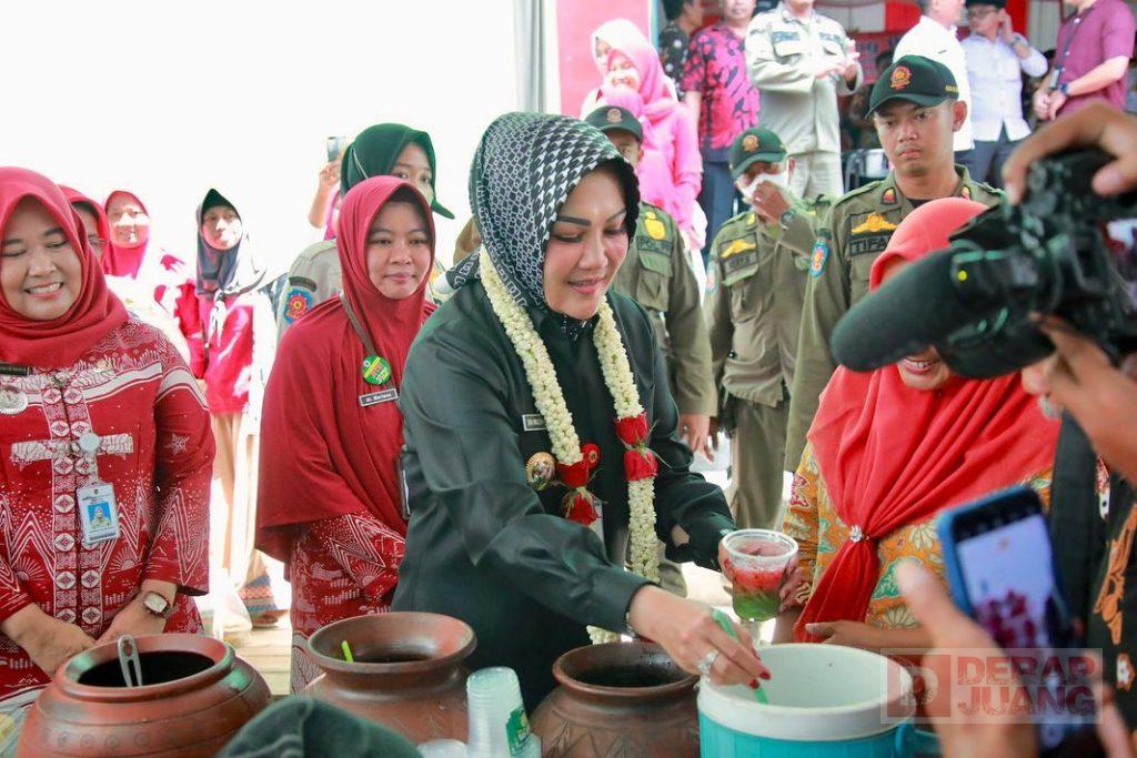 Foto: Bupati Klaten (Tengah, Mengenakan Baju Hitam) Menyiduk Minuman di Acara Sambang Warga Desa Bolopleret, Kec. Juwiring, Rabu (11/10/2023)