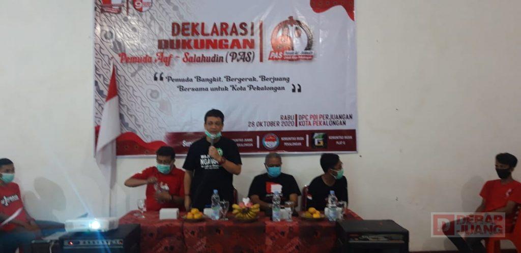 Kota Pekalongan – Deklarasi Relawan Pemuda AAF-Salahudin (PAS) digelar pada hari Rabu, (28/10/2020), yang bertepatan dengan Peringatan Hari Sumpah Pemuda. Kegiatan tersebut dilaksanakan di Aula Kantor DPC PDI Perjuangan Kota Pekalongan.