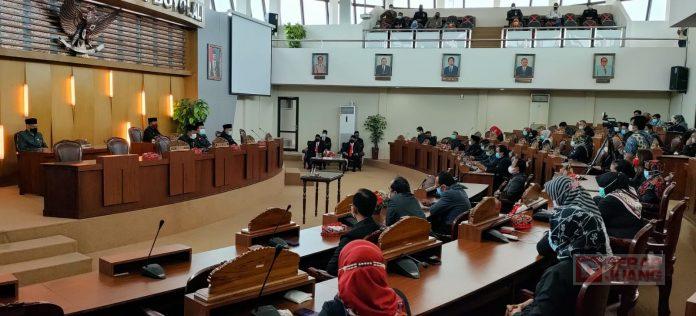 Kabupaten Boyolali – DPRD Kab. Boyolali gelar Sidang Paripurna pada hari Jumat (21/1/2021), yang dilaksanakan di Ruang Paripurna Kantor DPRD Boyolali dan mengagendakan penandatanganan Berita Acara Usul Pemberhentian Bupati dan Wakil Bupati Boyolali masa jabatan tahun 2016-2021.