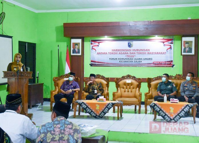 Hal tersebut disampaikan Bupati Demak pada acara Forum Komunikasi Ulama Umaro’ (FKUU) dengan tema ”Harmonisasi Hubungan antara Tokoh Agama dan Tokoh Masyarakat” di Kec. Gajah, Kab. Demak. Selasa (04/04/2023).