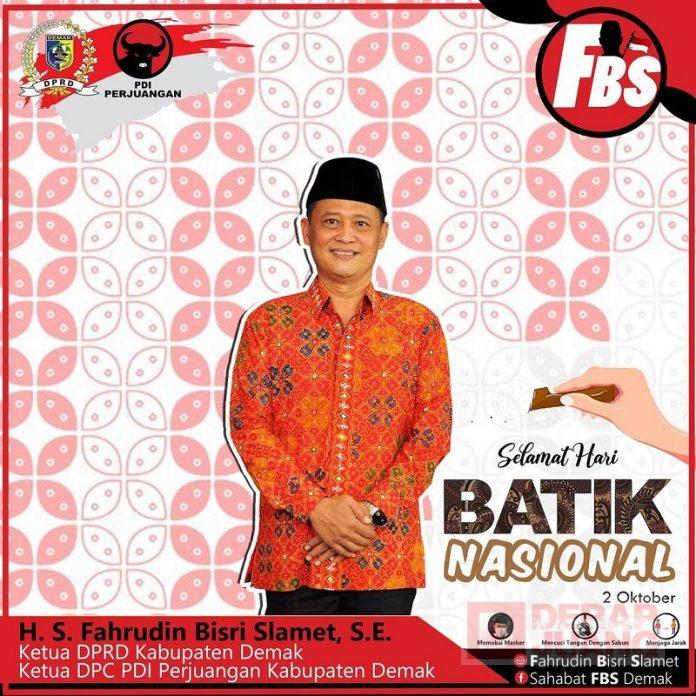 Kabupaten Demak – Menapak Hari Batik Nasional, Ketua DPC PDI Perjuangan Kab. Demak, Fahrudin Bisri Slamet mengingatkan kepada seluruh generasi sekarang, terkhusus generasi muda, untuk melestarikan warisan luhur ini.