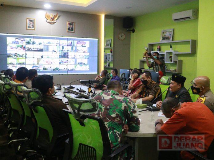 Kabupaten Demak – Ketua DPRD Kab. Demak, Fahrudin Bisri Slamet mengahadiri undangan Rakor Forkopimda Kab. Demak tentang pelaksanaan Puasa Ramadhan, larangan mudik Lebaran 1442 H, serta perkembangan Covid-19 di wilayah Kab. Demak.