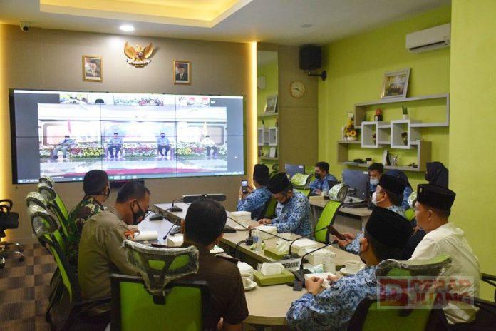 Kabupaten Demak – Setelah melakukan Halal Bihalal virtual bersama jajaran Pemprov Jawa Tengah dan seluruh warga Jawa Tengah. Ketua DPRD Kab. Demak, Fahrudin Bisri Slamet menggelar koordinasi bersama unsur Forkopimda dan beberapa OPD terkait, guna membahas kondisi pasca Lebaran.