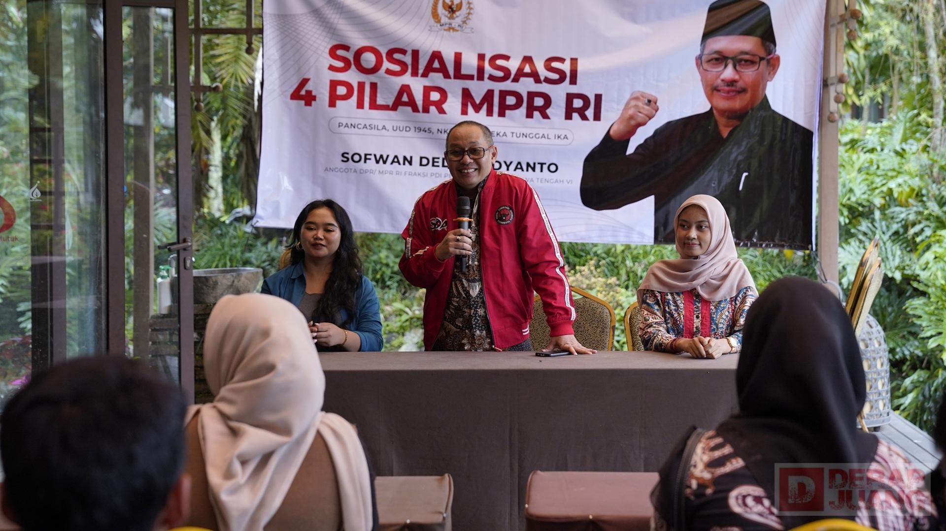 Kabupaten Temanggung — Anggota MPR RI, Sofwan Dedy Ardyanto menggelar Sosialisasi Empat Pilar Kebangsaan di Pendopo Caruban, Kandangan yang diikuti oleh ratusan anak muda Temanggung, Selasa pagi (10/02/2026).