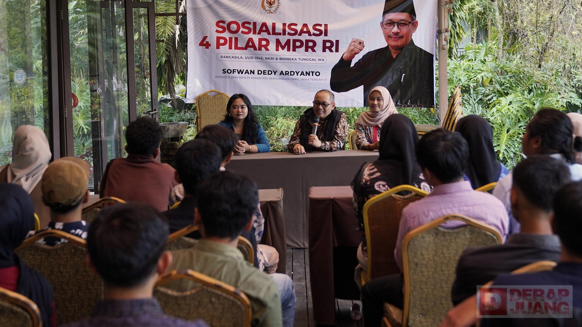 Kabupaten Temanggung — Sosialisasi Empat Pilar Kebangsaan yang digelar Anggota MPR RI, Sofwan Dedy Ardyanto di Pendopo Caruban, Kandangan, menjadi momentum penegasan pentingnya regenerasi kepemimpinan nasional yang sehat dan berkarakter.