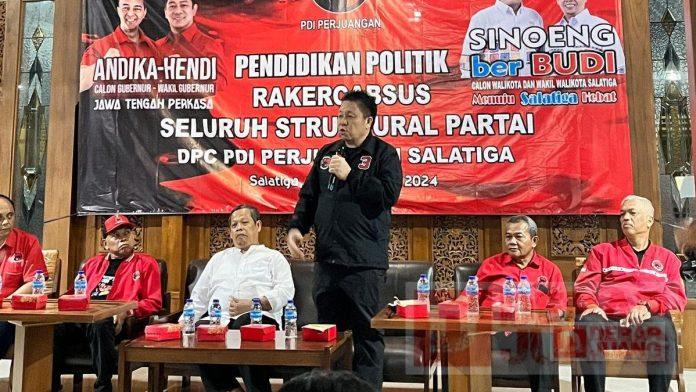 Ketua DPC PDI Perjuangan Kota Salatiga yang juga merupakan Pimpinan sementara DPRD Kota Salatiga Dance mengatakan, kegiatan Rakerancabsus ini untuk penguatan dan sosialisasi pemenangan Pilgub Jateng dan Pilwakot Kota Salatiga 2024.