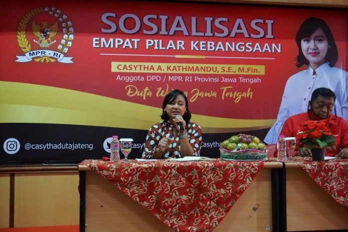 Kota Semarang – Anggota Dewan Perwakilan Daerah Republik Indonesia (DPD RI), Casytha Ariwi Kathmandu, S.E., M.Fin melakukan Sosialisasi sekaligus Bersilaturahmi bersama generasi Milenial di Kota Semarang, Kamis (2/7/2020).