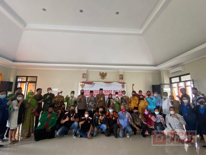Kesbangpol Karanganyar menyelenggarakan Sosialisasi Empat Pilar dengan menghadirkan tokoh agama, tokoh masyarakat, ormas kepemudaan, serta kalangan akademisi, dilaksanakan di aula Kantor Kecamatan Jaten, Senin (8/11/2021).
