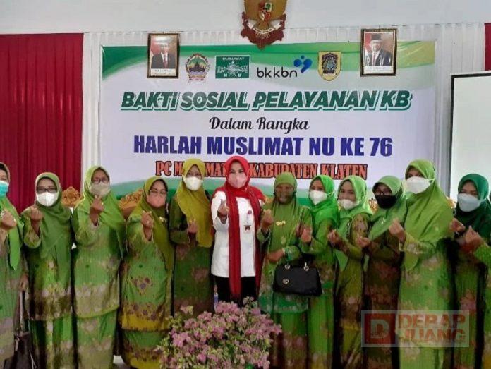 Kabupaten Klaten – Dalam rangka memperingati Hari Lahir (Harlah) Muslimat Nahdlatul Ulama (NU) Ke-76, Bupati Klaten, Sri Mulyani, S.M., bersinergi dengan Pimpinan Cabang (PC) Muslimat NU Kabupaten Klaten dan Dinas Sosial Pemberdayaan Perempuan Perlindungan Anak Pengendalian Penduduk dan Keluarga Berencana (Dinsos P3APPKB) Klaten mengadakan kegiatan Bakti Sosial Pelayanan KB. Kegiatan tersebut digelar di Balai Desa Joton, Kecamatan Jogonalan mulai Rabu, (16/2/2022).