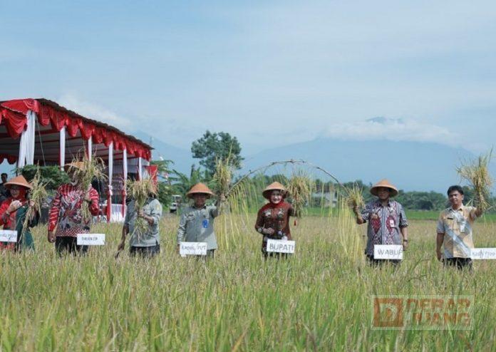 Kabupaten Klaten – Bupati Klaten, Hj. Sri Mulyani,S.M bersama Kementrian Pertanian RI melakukan panen padi Rojolele Srinar dan Srinuk serta melaksanakan serah terima surat keputusan hak perlindungan varietas tanaman (PVT) padi Rojolele Srinar dan Srinuk.
