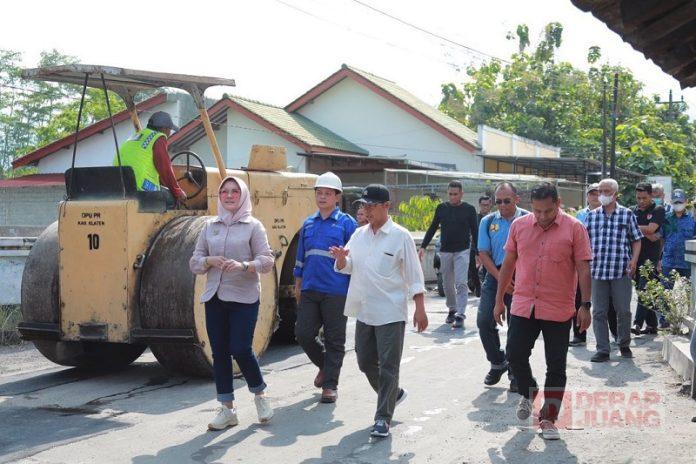 Kabupaten Klaten – Bupati Klaten, Hj. Sri Mulyani, S.M mengecek perbaikan jalan Mranggen-Ngupit, tepatnya di daerah Mranggen, Jatinom. Pengecekan tersebut merupakan bagian dari persiapan arus mudik lebaran 2023, Sabtu siang (8/4/2023).