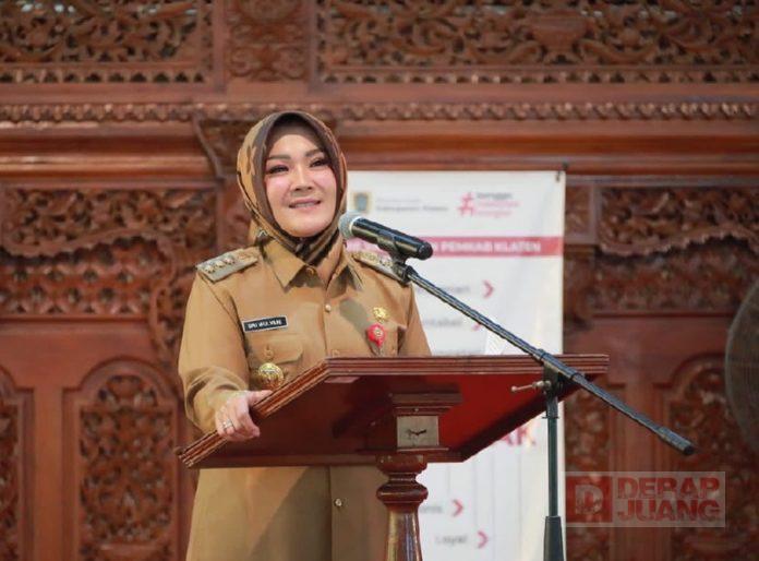 Kabupaten Klaten – Bupati Klaten, Hj. Sri Mulyani, S.M melakukan Sosialisasi Pemilihan Kepala Desa (Pilkades) Serentak Gelombang I tahun 2023 Tingkat Kabupaten Klaten yang diselenggarakan di Pendopo Klaten. Turut hadir juga dalam kesempatan tersebut Perwakilan Forkopimda Klaten, Sekretaris Daerah Klaten, Kepala OPD Klaten, camat, kepala desa, dan lainnya, Senin (13/3/2023).