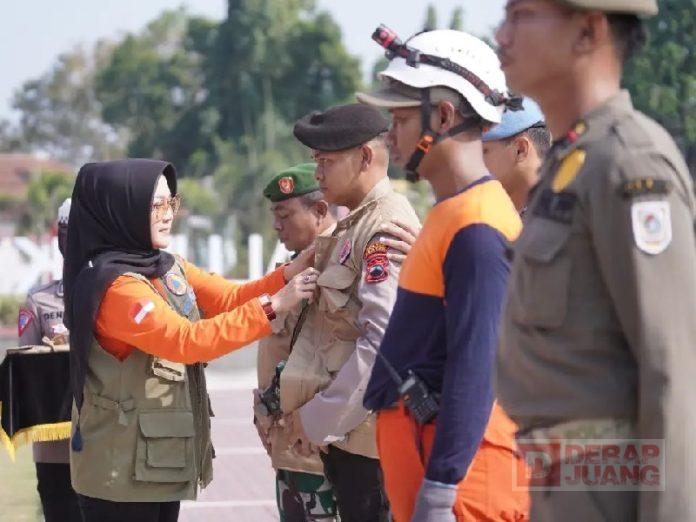 Kabupaten Klaten – Guna menghadapi dampak El Nino, Pemkab Klaten menggelar apel siaga satgas penanganan kebakaran hutan, lahan, dan kekeringan di Alun-alun Klaten, Sabtu (26/8/2023). Apel Siaga tersebut dihadiri Bupati Klaten Sri Mulyani, S.M, Forkopimda Klaten, Sekda, Asisten dan Staff Ahli, Kepala OPD, serta diikuti oleh pasukan gabungan TNI, Polri, Satpol PP, Damkar, pelajar serta lainnya.