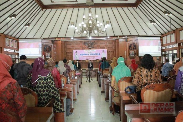 Kabupaten Klaten – Bupati Klaten, Hj. Sri Mulyani, S.M bersama Dinas Kesehatan Kanupaten Klaten menggelar acara Rembuk Stunting di Gedung Paripurna DPRD Kabupaten Klaten. Acara ini turut dihadiri juga oleh Ketua DPRD Kabupaten Klaten, Ketua TP Pkk Klaten, Kepala OPD, dan tamu undangan, Kamis (19/5/2022).
