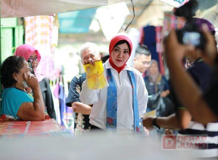 Kabupaten Klaten – Bupati Klaten, Hj. Sri Mulyani, S.M didampingi jajaran Kepala OPD terkait melaksanakan pantauan harga kebutuhan pokok di Pasar Darurat Klaten, (10/9/2022). Pasar yang berlokasi di Karanganom, Kecamatan Klaten Utara tersebut merupakan pasar sementara yang ditempati oleh pedagang karena Pasar Klaten sedang direvitalisasi.
