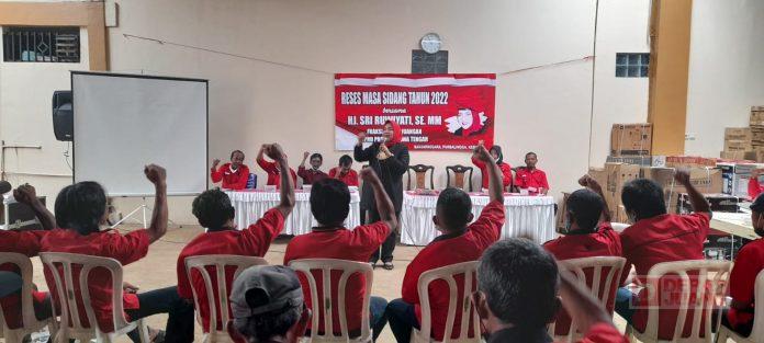 Kabupaten Banjarnegara – Anggota Fraksi PDI Perjuangan, Hj. Sri Ruwiyati, S.E., M.M., menyelenggarakan Reses Masa Sidang II Tahun 2022, di Desa Salamerta, Kecamatan Mandiraja. Reses ini diikuti oleh Jajaran PAC PDI Perjuangan Mandiraja, serta Ketua, Sekretaris dan Bendahara Ranting PDI Perjuangan se-Kecamatan Mandiraja. Turut hadir dalam giat tersebut, Wahju Djamika, Al.BS, S.E., selaku Wakabid Keanggotaan dan Organisasi DPC PDI Perjuangan Banjarnegara, Saidin, selaku Ketua PAC PDI Perjuangan Mandiraja, Jatiwiningsih, selaku Sekretaris PAC, serta Ristamto, selaku Bendahara PAC.