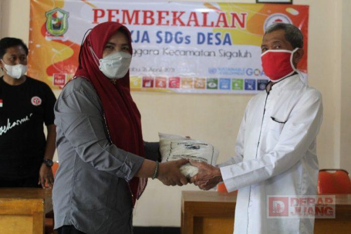 Kades Tunggara, Tunggul Tri Wasono menyampaikan terima kasih kepada Sri Ruwiyati dari PDI Perjuangan Jawa Tengah yang telah menyalurkan beras kepada warganya.