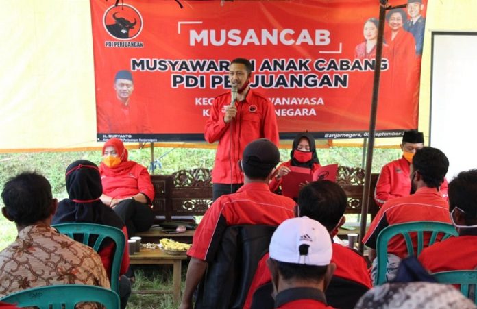 Kabupaten Banjarnegara – Hj. Sri Ruwiyati selaku Wakil Ketua Bidang Pembangunan Manusia dan Kebudayaan DPD PDI Perjuangan Jawa Tengah memimpin kegiatan Musyawarah Anak Cabang (Musancab) di PAC PDI Perjuangan Kec. Wanayasa, Selasa (8/9/2020).