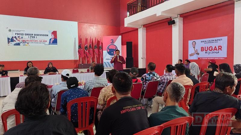 Kabupaten Banjarnegara – Wakil Ketua DPD PDI Perjuangan Jawa Tengah, Hj. Sri Ruwiyati, S.E., M.E mengingatkan pentingnya gotong royong untuk menghadapi serta memenangkan pertarungan Pilkada Banjarnegara 2024. Hal ini disampaikan Sri Ruwiyati saat digelar Focus Group Discussion (FGD) dan sosialisasi Bakal Calon Bupati (Bacabup) Banjarnegara dari PDI Perjuangan, dr. H. Bugar Wijiseno, MARS.FISQua, Kamis (11/07/2024).