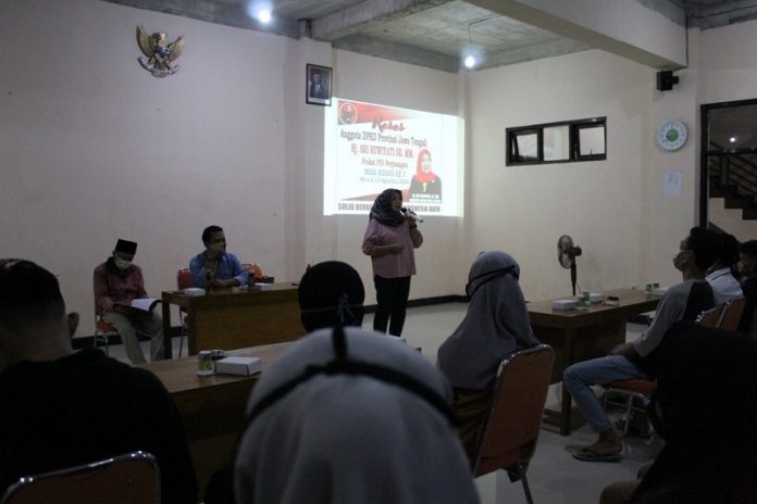 “Reses kali ini agak berbeda, karena reses kali ini diselenggarakan di tengah Pandemi Covid-19. Maka dari itu, kegiatan ini harus menerapkan Protokol Kesehatan yang telah dicanangkan Pemerintah, yaitu, peserta diwajibkan memakai masker, menjaga jarak tempat duduk. Selain itu, peran generasi muda dimasa Pandemi ini sangat penting. Sebagai sosok muda, diharapkan untuk dapat menjadi agen perubahan yang bergerak untuk dapat membantu Pemerintah dalam memutus mata rantai penyebaran Covid-19. Pemuda harus dapat memberikan edukasi kepada keluarga, teman, maupun masyarakat dilingkungan masing-masing, bahwa virus Covid-19 ini bukan hal yang patut diremehkan,” tutur Hj. Sri Ruwiyati, Anggota Fraksi PDI Perjuangan Provinsi Jawa Tengah.