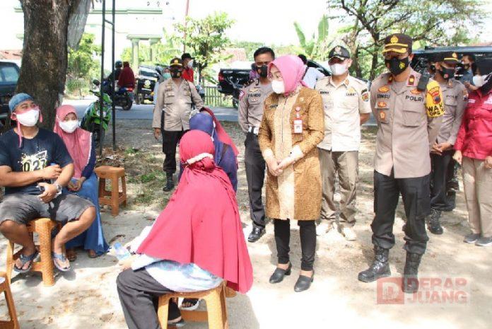 Kabupaten Grobogan – Sri Sumarni apresiasi gerai Vaksin Presisi Mobile dengan melihat warga Desa Kluwan, Kec. Penawangan, Kab. Grobogan yang berbondong-bondong mengikuti vaksinasi massal lewat gerai Vaksin Presisi Mobile, yang diadakan oleh Polres Grobogan, Jumat (09/07/2021).