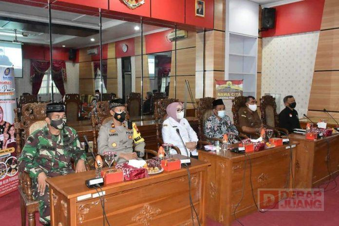 Kabupaten Grobogan – Hj. Sri Sumarni selaku Bupati Kab. Grobogan mengikuti peringatan Isro’ Mi’roj melalui Zoom Meeting dengan tokoh agama yang ada di Jawa Tengah, acara ini dihadiri oleh KH. Ahmad Muwafiq, Kamis (25/2/2021).