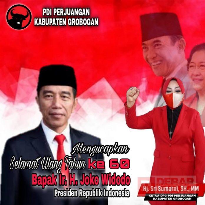 Kabupaten Grobogan – Bupati Grobogan, Sri Sumarni mengucapkan selamat kepada Presiden Joko Widodo atau Jokowi pada hari ulang tahunnya yang ke-60. Dalam ucapannya, Sri Sumarni menyebut Jokowi sebagai “Presidennya Rakyat Kecil”.