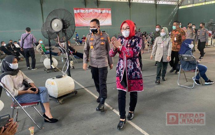 Kabupaten Grobogan – Sri Sumarni, Bupati sekaligus Ketua DPC PDI Perjuangan Grobogan datangi salah satu sentra vaksinasi massal yang ada di wilayah Kab. Grobogan, Kamis (05/08/2021).
