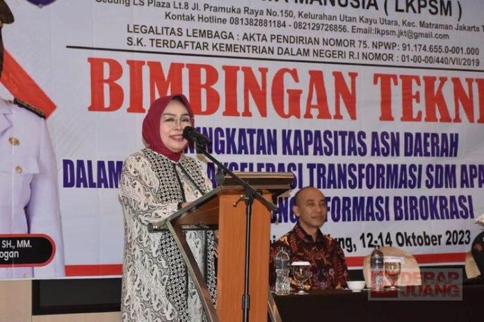 Kabupaten Grobogan – Bupati Kabupaten Grobogan, Sri Sumarni, membuka secara resmi kegiatan Bimbingan Teknis Peningkatan Aparatur Sipil Negara (ASN) dalam rangka akselerasi transformasi Sumber Daya Manusia (SDM) aparatur pemerintah, di Bandung, pada Sabtu (14/10/2023).
