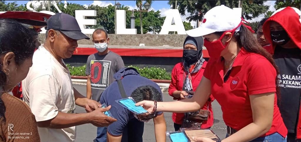 “Sejumlah 1.500 masker dan 1 karung jamu empon-empon habis dibagikan untuk masyarakat Kota Magelang. Bahkan kita mengambil jatah masker PAC Magelang Selatan sebagai tambahan. Selain masker dan jamu empon-empon, kita juga membagikan handsanitazer dan cairan disinfektan. Saya harap masyarakat Kota Magelang selalu menjaga kebersihan lingkungan dan rajin mencuci tangan.” ungkap Stin Syahyutri selaku Ketua Komisi B Kota Magelang.
