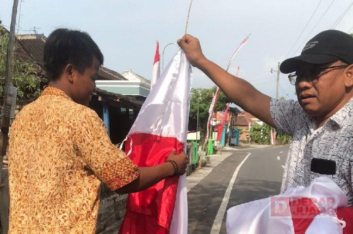 Secara khusus, Sugiyarto membagikan Bendera Merah Putih satu persatu kepada warga. Sembari membagikan bendera, Sugiyarto yang juga selaku Wakabid Kehormatan DPC PDI Perjuangan Sragen mengatakan agar bendera tersebut dikibarkan satu tiang penuh.