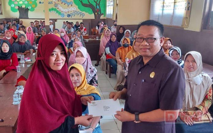 Kabupaten Sragen – Wakil Ketua Bidang Kehormatan DPC PDI Perjuangan Sragen, Sugiyarto, S.E menyerahkan SK Program Indonesia Pintar (PIP) aspirasi dari Ketua DPR RI, Mbak Puan Maharani kepada 97 Wali Murid SD N 3 Pengkok, Kedawung, Senin (29/8/2022).