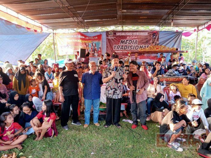 Kabupaten Klaten – Anggota Fraksi PDI Perjuangan DPRD Jawa Tengah, Drs. Stephanus Sukirno, M.S menggelar Sosialisasi kebijakan melalui media tradisional di Lapangan Dukuh Mindi, Desa Kaligayam, Kecamatan Wedi, Minggu (4/6). Kegiatan yang bertajuk ‘Kesenian Tradisional Sebagai Media Sosialisasi’ ini menampilkan Kelompok Kesenian Jathilan Krida Kencana Manunggal dari Dukuh Bakalan, Desa Kaligayam yang diasuh oleh Joko Sutrisno.
