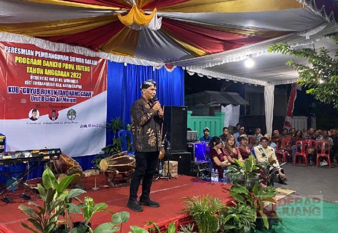 Hanung Turwadji menyampaikan dalam sambutannya jika peresmian pembangunan sumur dalam merupakan hasil dari realisasi Bankeu Provinsi, bantuan dari Sumanto.