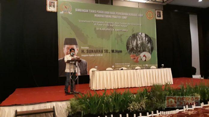 Kabupaten Banyumas – Anggota DPR RI Fraksi PDI Perjuangan, H. Sunarna, menggelar Reses dan dengar pendapat masyarakat. Acara digelar bersamaan dengan Bimbingan Teknis (Bimtek) hasil perkebunan berbasis Good Manufacturing Practice (GMP), dengan tema “Sosialisasi Peningkatan Produksi, Nilai Tambah dan Daya Saing di Pasar Dunia Bagi Petani Kelapa”, bertempat di Hotel Aston Purwokerto, Rabu (24/2/2021).