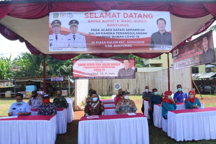 Kabupaten Banyumas – Anggota Fraksi PDI Perjuangan DPR RI Komisi IV, H. Sunarna, S.E., M.Hum. melakukan safari Gemar Makan Ikan (Gemarikan). Safari tersebut sekaligus bersilaturahmi dengan petani ikan dan pelaku UMKM serta menyerap aspirasi masyarakat. Kegiatan tersebut dilaksanakan di Desa Piasa Kulon Kecamatan Somagede, tepatnya di embung Rawa Bener, Sabtu (4/7/2020).