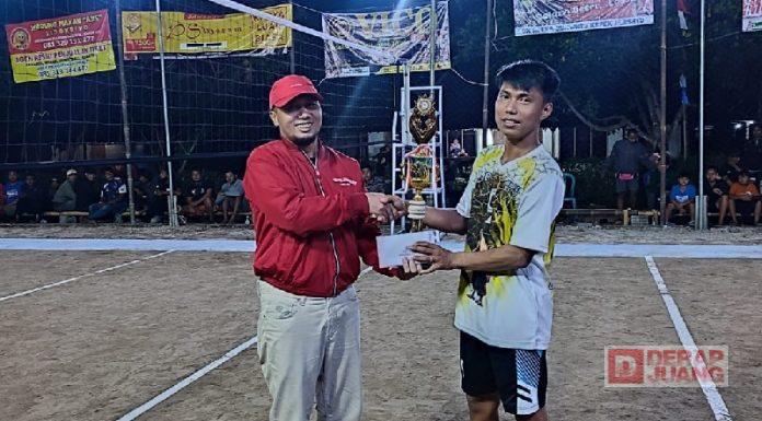 Kabupaten Wonogiri – Komandan Tempur Elektoral Bintang Dua Wonogiri, Sutoyo turut memfasilitasi kegiatan turnamen voli desa Kerjo Lor, Kecamatan Ngadirojo. Hal tersebut merupakan salah satu bentuk dukungan dalam rangka meningkatkan kualitas kepemudaan dalam acara Pordus Bola Voli Desa Kerjo kidul yang bertajuk Semi Open tahun yang kedua di tahun 2023, Senin (7/8/2023).