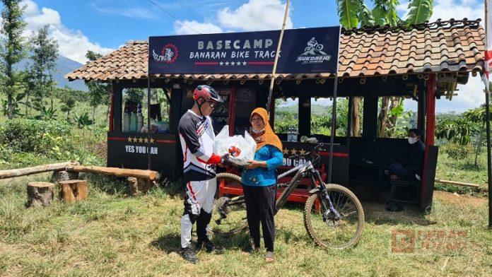 Selain itu, Munawir juga memberi bantuan berupa sembako kepada masyarakat yang membutuhkan. Seperti halnya pada warga sekitar yang melakukan aktivitas di Basecamp Banaran Bike Track Sukorejo.